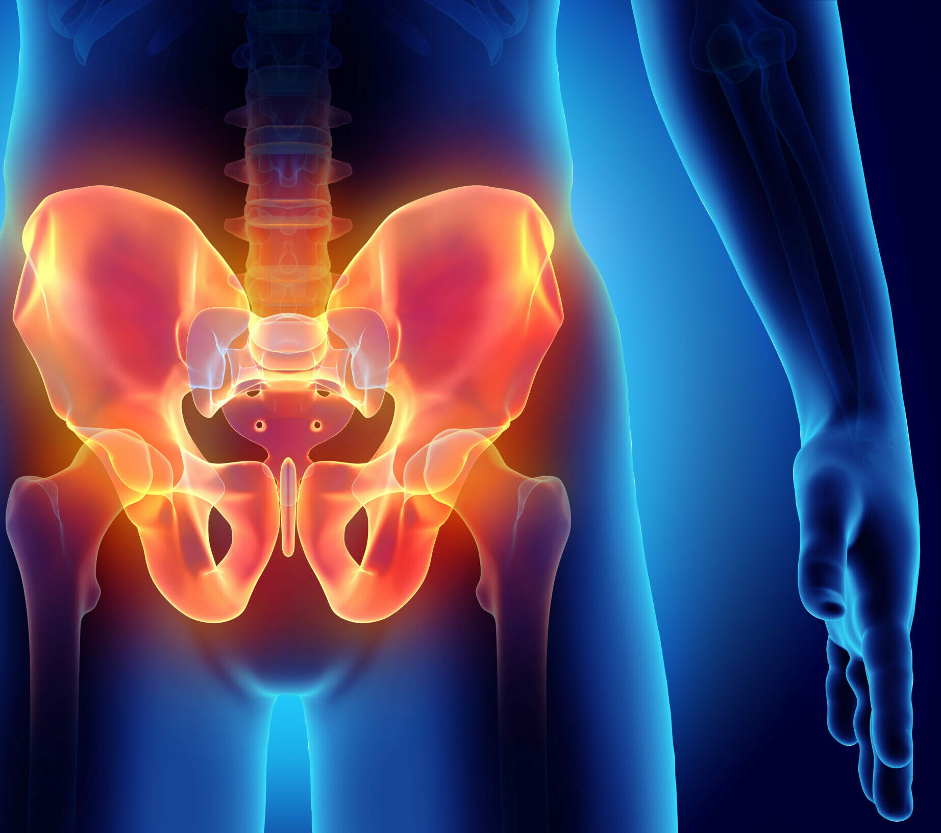 Normally, the pelvis bears weight mainly on the strong bony arches in the ilium, with the pubic and ischiatic rami acting as secondary tie arches. When the pelvis suffers trauma, the rami tend to fracture first, weakening the secondary tie arches but leaving the main iliac weight-bearing arches intact.